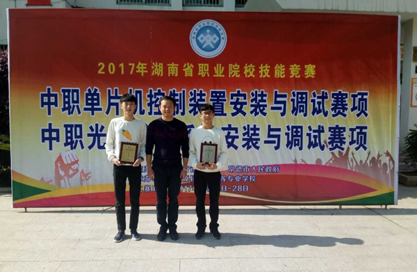 电子专业单片机项目,熊子珺获省一等奖,将于6月3日赴江苏参加国赛,刘海获省二等奖,指导老师黄志杰;