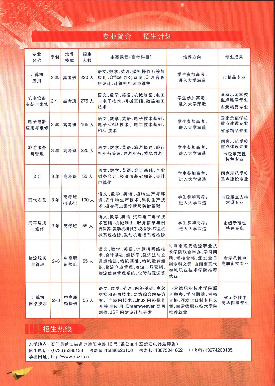 湘北职业中专学校2017年招生计划