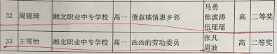 据悉,本次活动以《美好生活 劳动创作》为主题,设立演讲、朗诵两个赛项,通过录制视频的方式参赛。湘北职专趁此机会,将比赛作为展示中职学生能力和风采的好舞台,聘请专家专门指导,郑铭琪、于司雨、马勇、张凡4位指导老师精心打磨作品,刘金枚、熊佳两位同学勇夺朗诵比赛高中组一等奖,周锦琦、王雪怡两位同学获演讲比赛高中组二等奖。