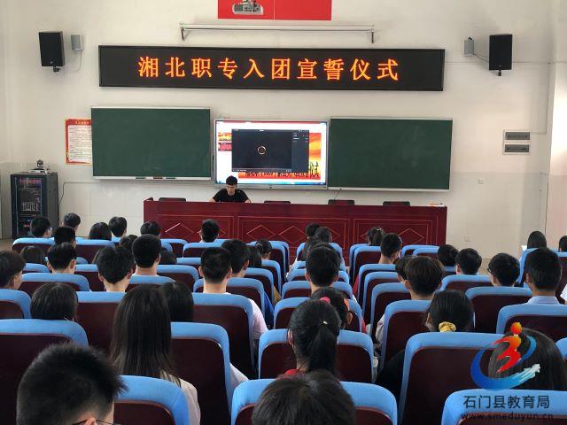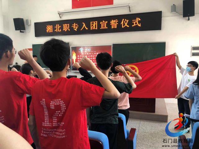 本网讯(通讯员 刘地宏)5月30日,湘北职专在阶梯教室隆重举行新团员入团宣誓仪式。156名团员面对鲜艳团旗,举起右手庄严宣誓:“我志愿加入中国共产主义青年团,坚决拥护中国共产党的领导,遵守团的章程……为共产主义而奋斗。”
