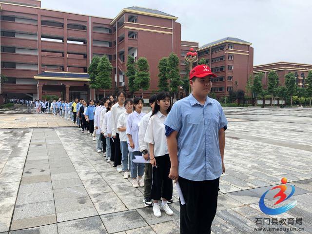 考生由学生志愿者整队入场