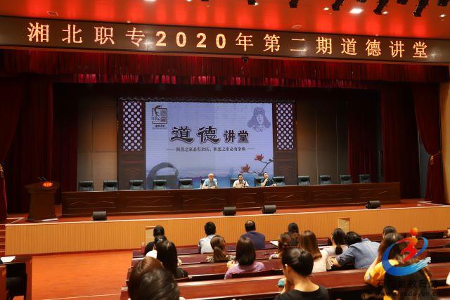 本网讯(通讯员 刘地宏 唐玮)7月8日,湘北职专举办了以“崇德修身尚善明礼”为主题的道德讲堂活动。本次道德讲堂通过自我反思、唱歌曲、学模范、诵经典、发善心、送吉祥六个环节依次展开。