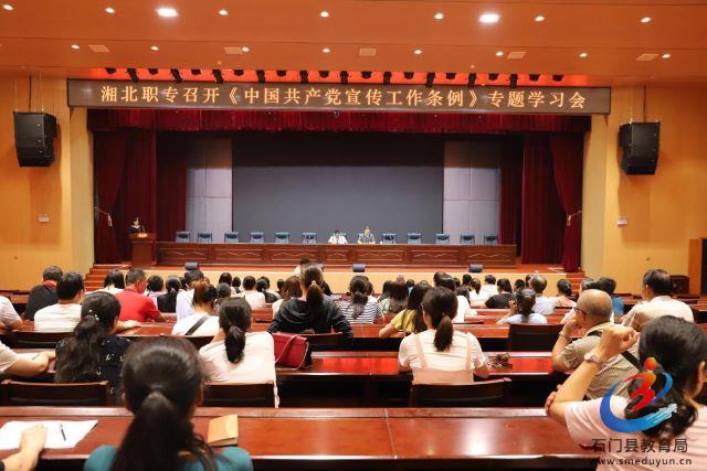 本网讯(通讯员 刘地宏)6月10日,湘北职专在报告厅组织全体党员及学校班子成员学习《中国共产党宣传工作条例》(以下简称《条例》)。学校党委书记、校长杨爱民主持会议并讲话,强调要认真贯彻习近平总书记关于宣传工作的重要论述精神,学习好贯彻好《条例》。