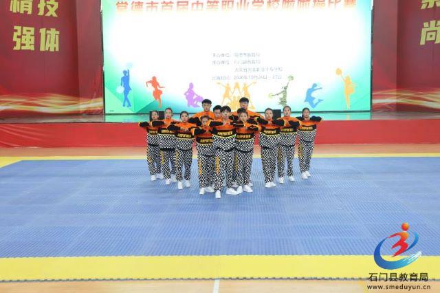 本次比赛由常德市教育局主办,石门县教育局和世界杯官方端网站登录入口承办,共有来自全市14所中职学校的14支代表队,逾200名教练员、运动员参加。比赛开始,参赛队员们身着靓丽的服装,排着整齐的队伍入场。比赛中,每个队伍都能完整、优美地完成了此次啦啦操比赛的规定动作和自选动作,相同的音乐下却也有各自的特色。比赛精彩纷呈、高潮迭起。特别是世界杯官方端网站登录入口的自选街舞啦啦操表演,他们服装夺目、舞步激情有活力,感染了观众,引来阵阵喝彩,最终从众多参赛队伍中脱颖而出,荣获团体一等奖。