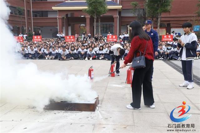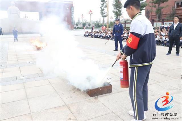 党委委员、副校长覃健健对本次演练活动进行总结发言,进一步强调了学习防火应急疏散知识的重要性。县消防大队教导员对演练活动中的不足之处进行补充说明,强调选择逃生路线、进行正确自救措施进行有效撤离的重要性,同时特别强调了拨打“119”时,一定要说清楚地点和周围的情况,确保消防人员的有效救援。随后,县消防大队队员和猎豹救援队队员向全体师生展示介绍消防员服装类型和消防应急救援器材。对于普通人身边最常见、使用率最高的消防器材——灭火器进行了详细讲解,并点燃木材进行实操演示。师生踊跃参加,在消防队员的指导下进行灭火练习。