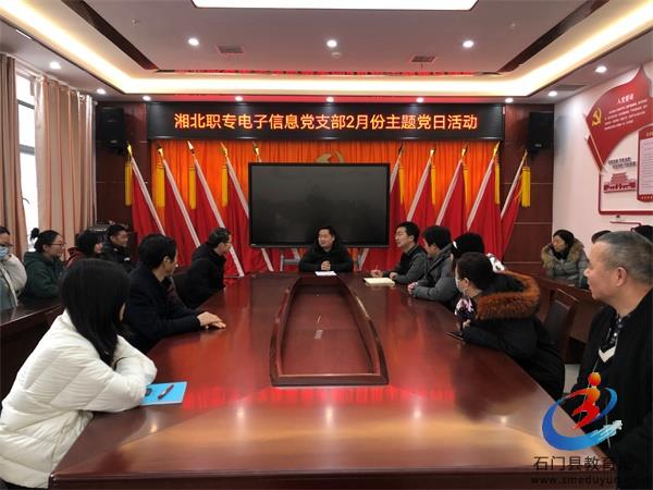 本网讯(通讯员 屈军军)1月23日上午,湘北职专党委所属党支部开展了2月份主题党日活动,会议由各支部书记主持,全体党员参加。
