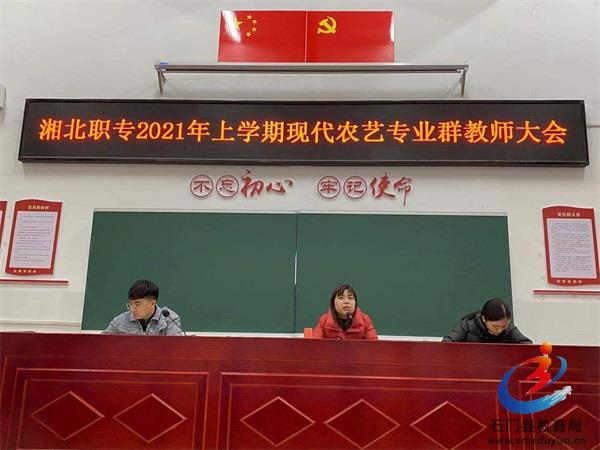 本网讯(通讯员 杨梦芸)2021年2月26日下午3时,湘北职业中专学校现代农艺专业群教师大会在尚学楼B栋二楼阶梯教室隆重举行。会议由团委书记、现代农艺专业群副主任高源主持,党委委员、副校长、现代农艺专业群主任宋佳、现代农艺专业群副主任吴雪出席了会议。