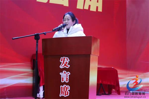 教师代表廖芹斯老师进行了发言,鼓励同学们坚持不懈、鼓足干劲,为了心中的理想和肩上的责任卯足劲冲向终点。