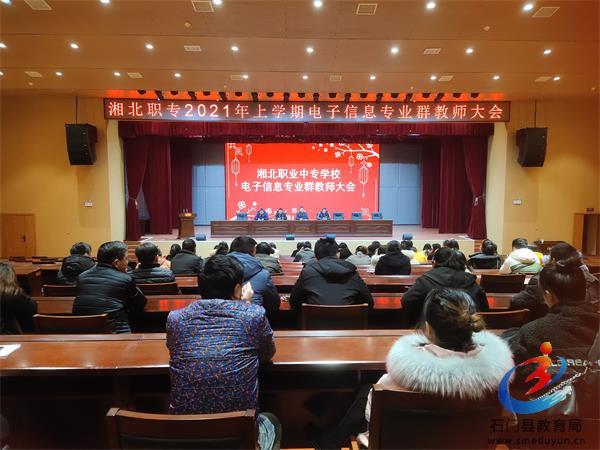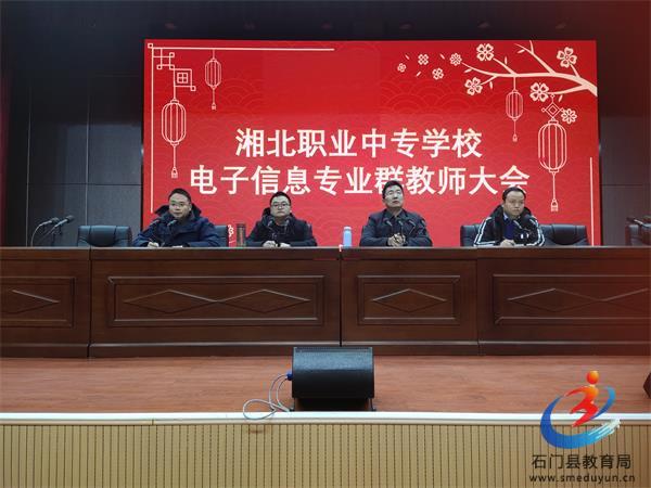本网讯(通讯员 龚力红)2021年2月26日,湘北职业中专学校电子信息专业群教师大会在学校报告厅隆重举行。会议由党委委员、副校长覃健健主持,教务处主任、电子信息专业群副主任黄志杰,电子信息专业群副主任易波,学生处副主任朱杰以及电子信息专业群全体老师参加会议。会议由覃健健校长主持:覃校长就专业群领导分工,专业群发展规划做了详细安排。