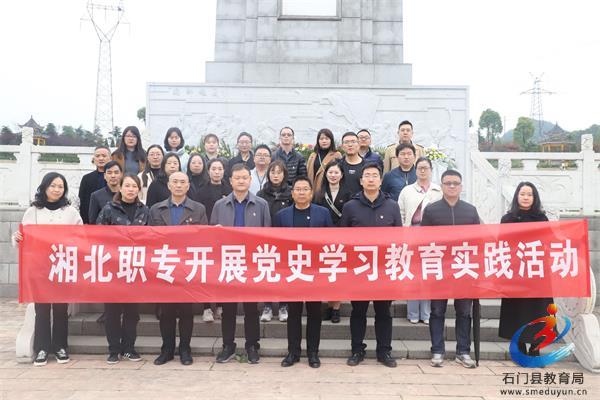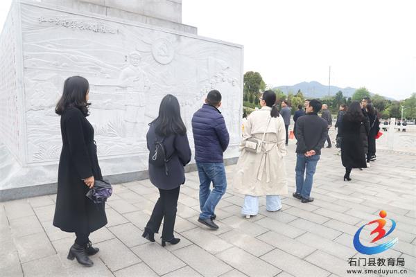 活动中,同志们怀着崇高的敬意和深切地缅怀之情,向“革命烈士永垂不朽”纪念碑敬献鲜花、鞠躬,并默哀一分钟,表达对革命先烈的深切缅怀和无限敬仰。在全党号召学党史的环境下,校长杨爱民在碑前进行了党课学习,提及石门是革命老区,具有光荣的革命传统,涌现出了王尔琢、贺锦斋等一批革命先烈,表示将继承和发扬先烈的革命遗志和远大理想,立足岗位,敬业奉献。