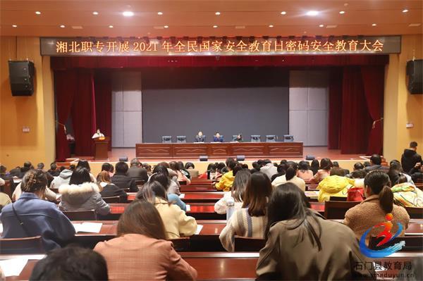 本网讯(通讯员 龚力红)4月10日,为推动密码安全教育深入开展,进一步增强学校教职工密码安全意识,湘北职专在学校报告厅开展2021年全民国家安全教育日密码安全宣传教育大会,学校全体教职工参加此次会议。