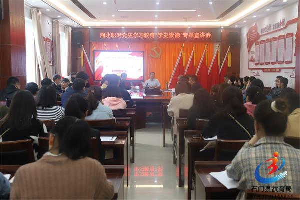 本网讯(通讯员 龚力红)5月19日,湘北职专在崇德楼会议室开展党史学习教育“学史崇德”专题宣讲会,学校全体党员参加此次会议。
