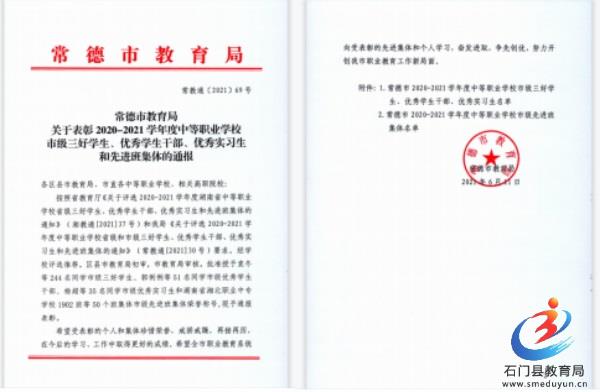 本网讯(通讯员 杨越)在学校党委的领导下,湘北职专全面贯彻党的教育方针,落实立德树人根本任务,在师生共同努力下,我校涌现出了一群品学兼优的优秀学生、学生干部、优秀实习生和优秀班集体。