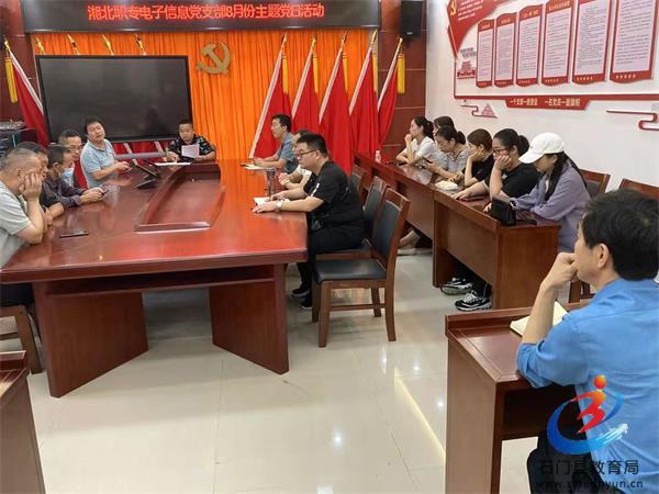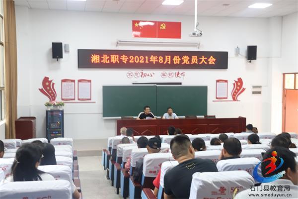 本网讯(通讯员 龚力红)8月26日,湘北职专在尚学楼阶梯教室开展8月份主题党日活动,全体党员参加活动。