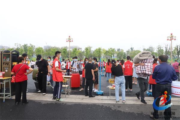 开学前,学校按照要求做好公共场所的清洁、通风和消毒工作,并对师生假期行踪和身体健康状况进行全面摸排,积极做好应对疫情迎接开学的各项准备工作。为了更好服务引导高一新生,学校组织教职工志愿者参加此次迎新活动。志愿者们早早地来到学校,等候前来办理入学手续的学生和家长,为迎新工作做好充分的准备。怀抱梦想的莘莘学子陆陆续续来到学校,志愿者们分工明确、有条不紊地迎接新同学,为他们耐心讲解入学手续办理细节以及安全须知,引导他们查看分班情况、宿舍分布,并指引新生到各自班主任处登记相关信息。