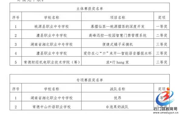 湘北职专在主体赛中荣获省级三等奖、在专项赛中荣获省级二等奖