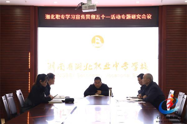 湘北职专学习宣传贯彻五个一活动专题研究会议 来源:湘北职业中专学校 发布时间:2021-11-25 浏览次数: 次 【字体:小 大】 本网讯(通讯员 龚力红)11月25日上午,湘北职专党委在崇德楼会议室召开学习宣传贯彻五个一活动专题研究会议。湘北职专充分认识到了新时代教育评价改革的重大意义和任务要求,把学习宣传贯彻新时代教育评价改革作为当前和今后一个时期重要工作任务,结合工作实际,迅速动员部署,有针对性地开展学习宣传贯彻“五个一”活动。湘北职专学习宣传贯彻五个一活动专题研究会议 终审:smeduadmin07 【打印正文】