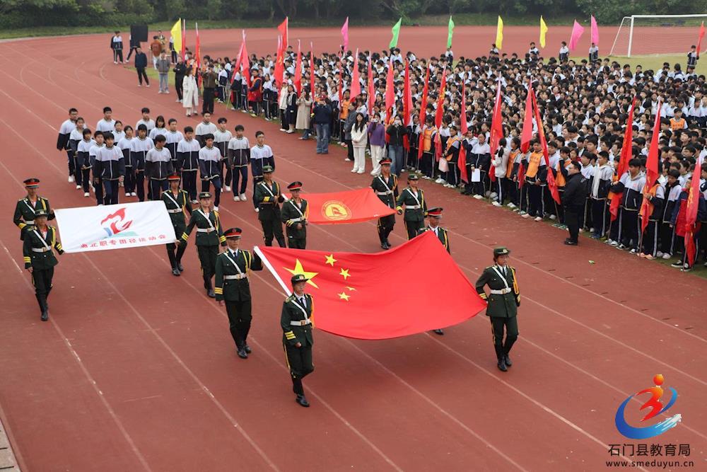 全场肃立,《义勇军进行曲》激昂奏响。全体师生面向国旗行注目礼,目光坚定而庄重,国旗在护旗手的护送下缓缓上升,直至在旗杆顶端迎风舒展。这一刻,爱国情怀与集体荣誉感在每一位湘北职专人心中升腾,也为本次运动会注入了最厚重的精神底色。